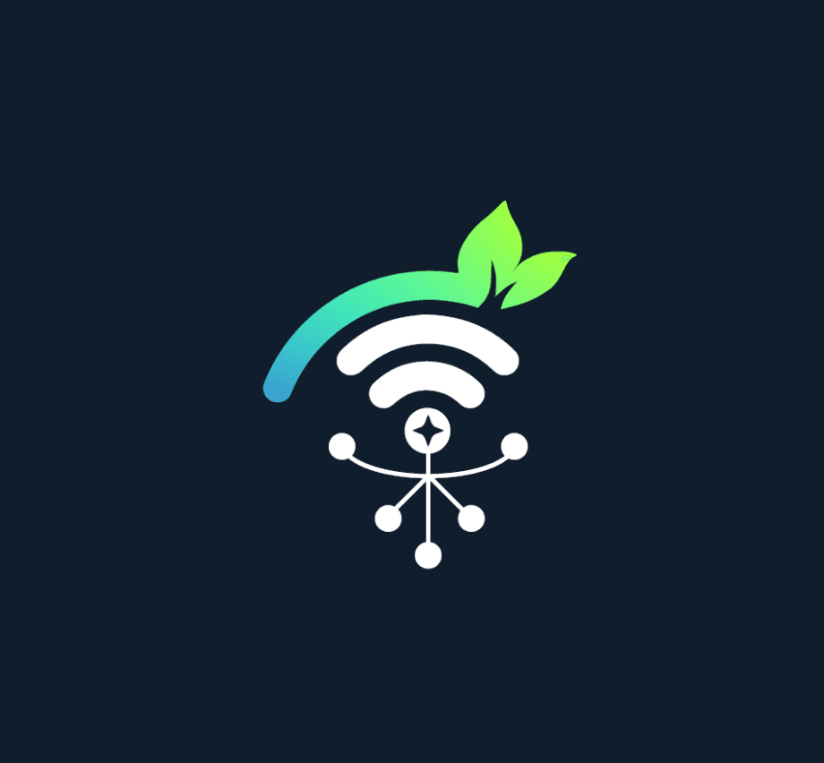 The logo elements represent different keywords for the metaverse. the leaves represent plant health and agriculture and the root like network system represents how vast the network is, the Wi-Fi symbol integrated in the logo represents the online factor and AI is represented by the stars.