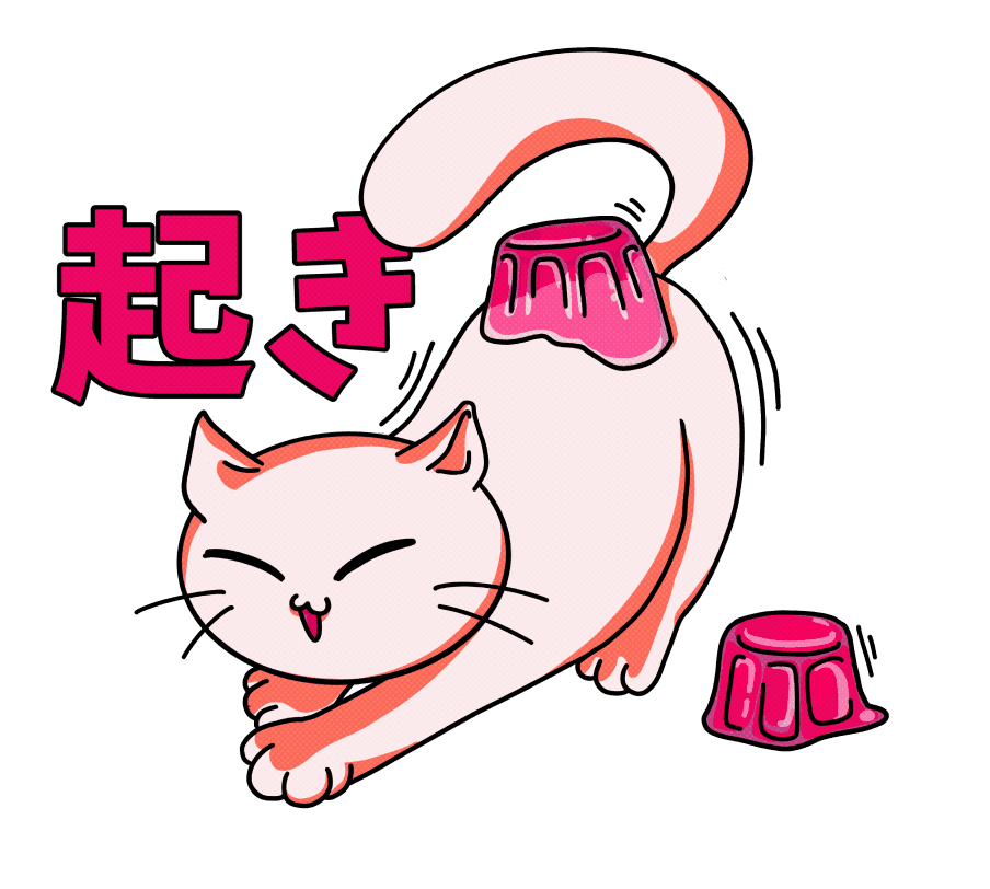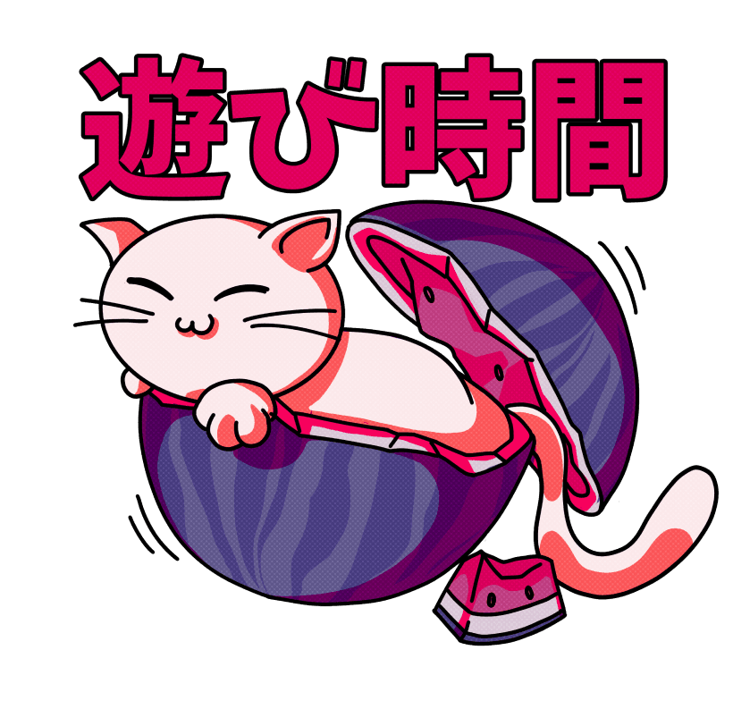 Cat food is a series of drawings of a cat swimming in food. The phrases imply holiday, relaxation, playtime and eating time.