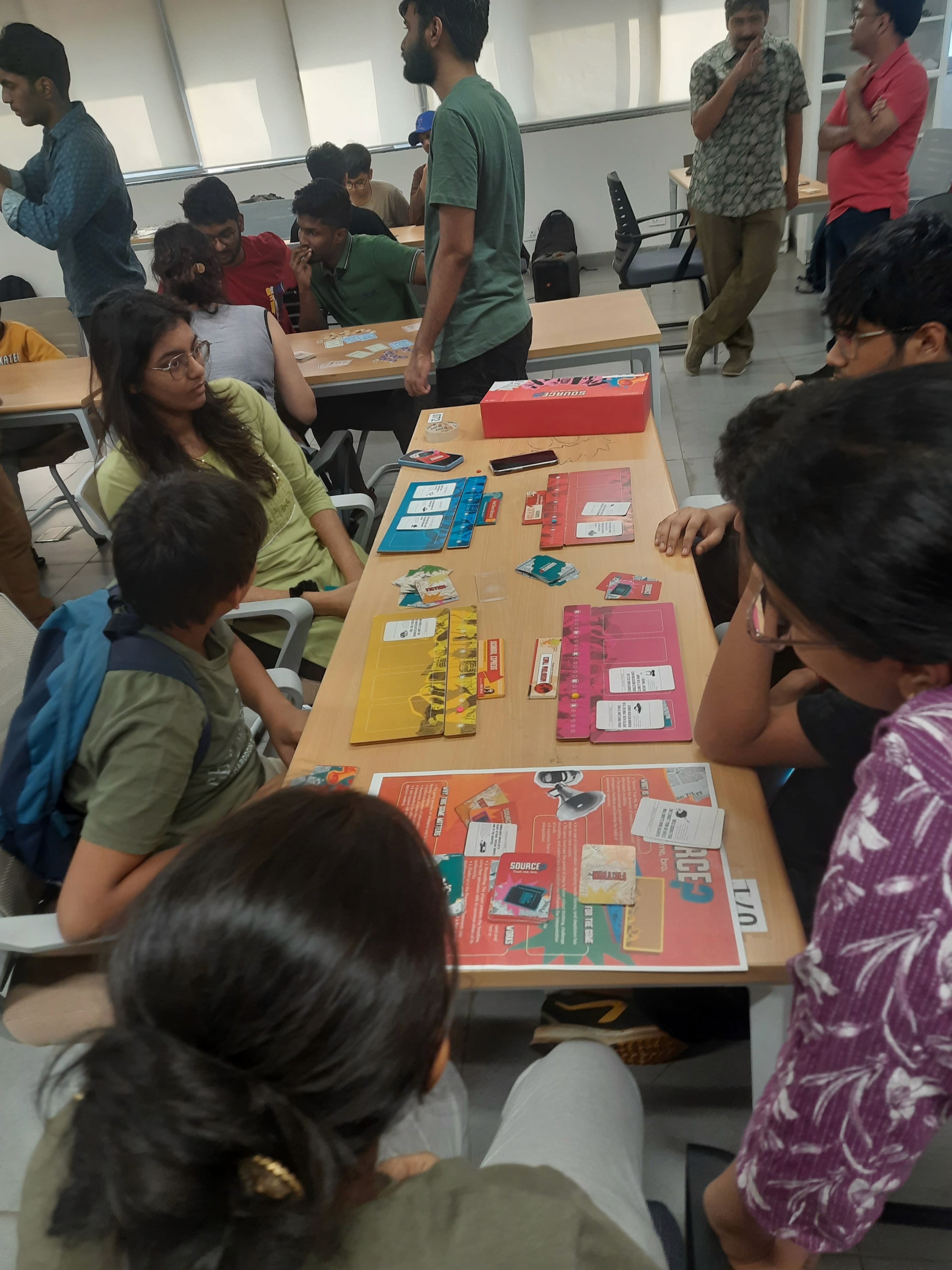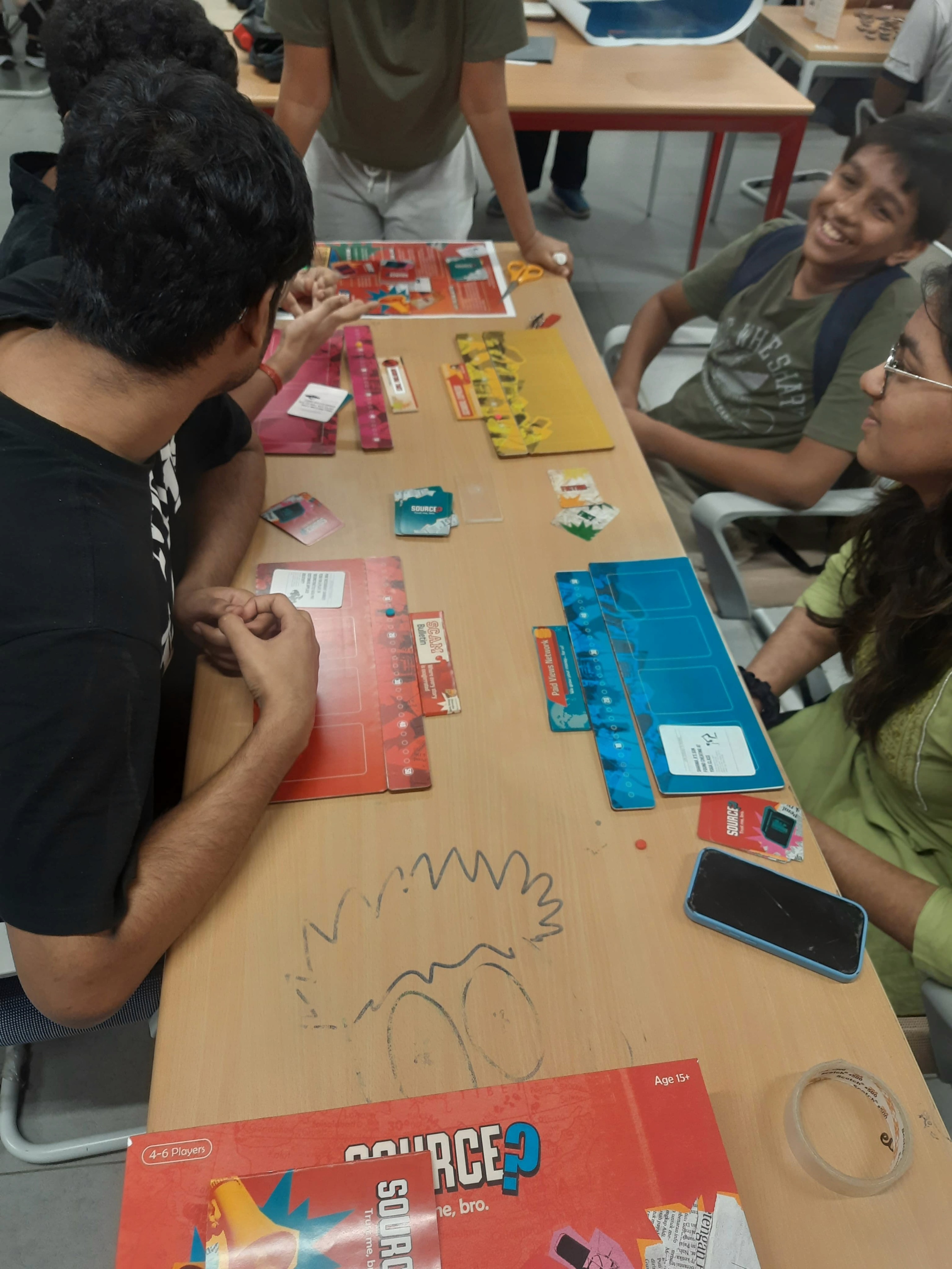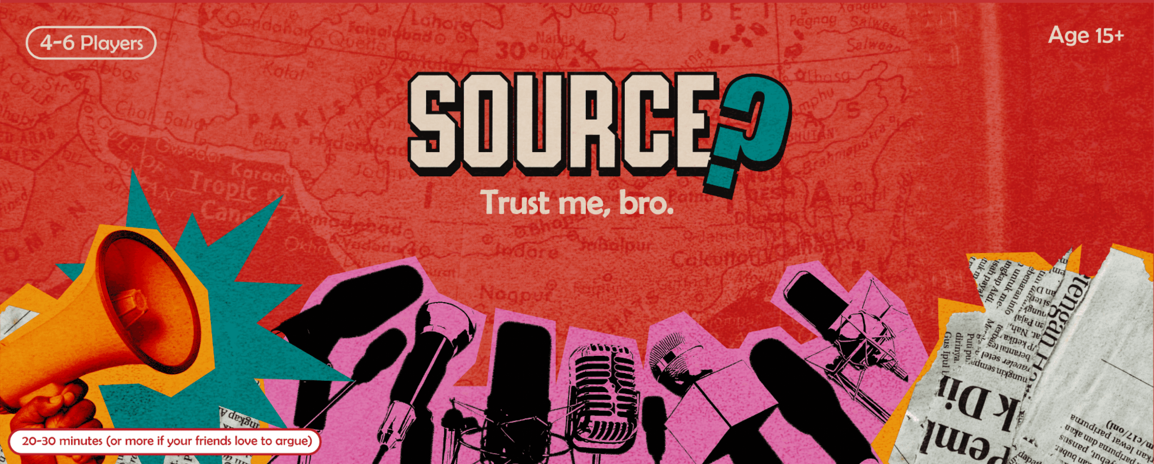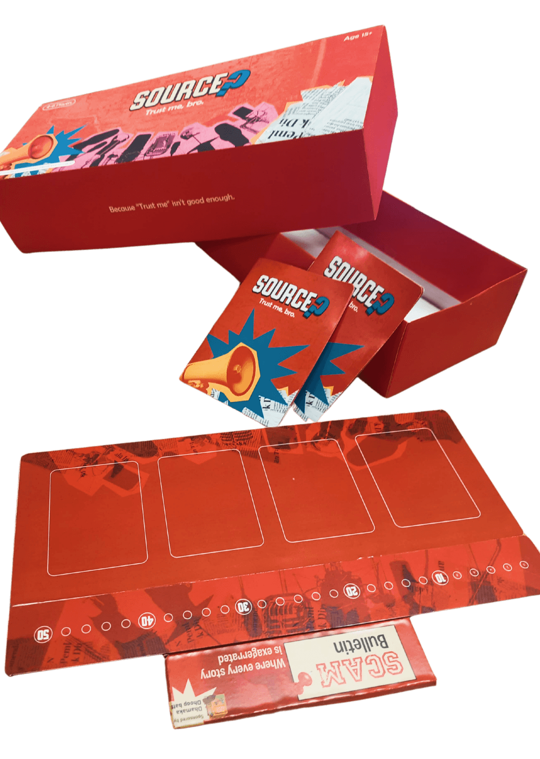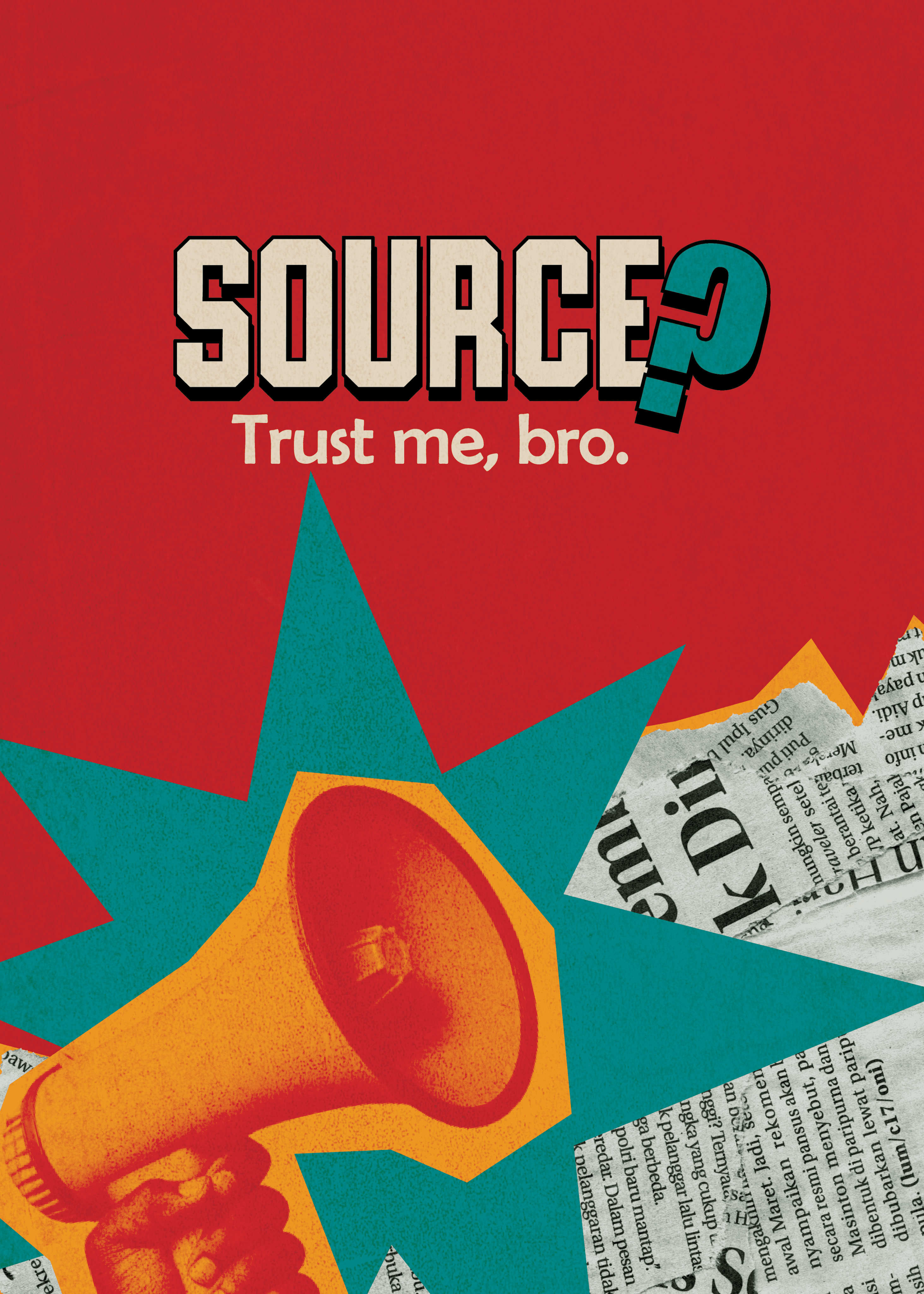"Source? Trust me, bro." is a tabletop game that we worked on during the game design module. The task was to create an educational board game, and, we chose media literacy as our theme. It is a chaotic bluffing game that puts you in the world of media, where confidence matters more than the truth. Players take on the role of news outlets, creating and presenting outrageous headlines. The challenge is to convince others that your story is real or fake.