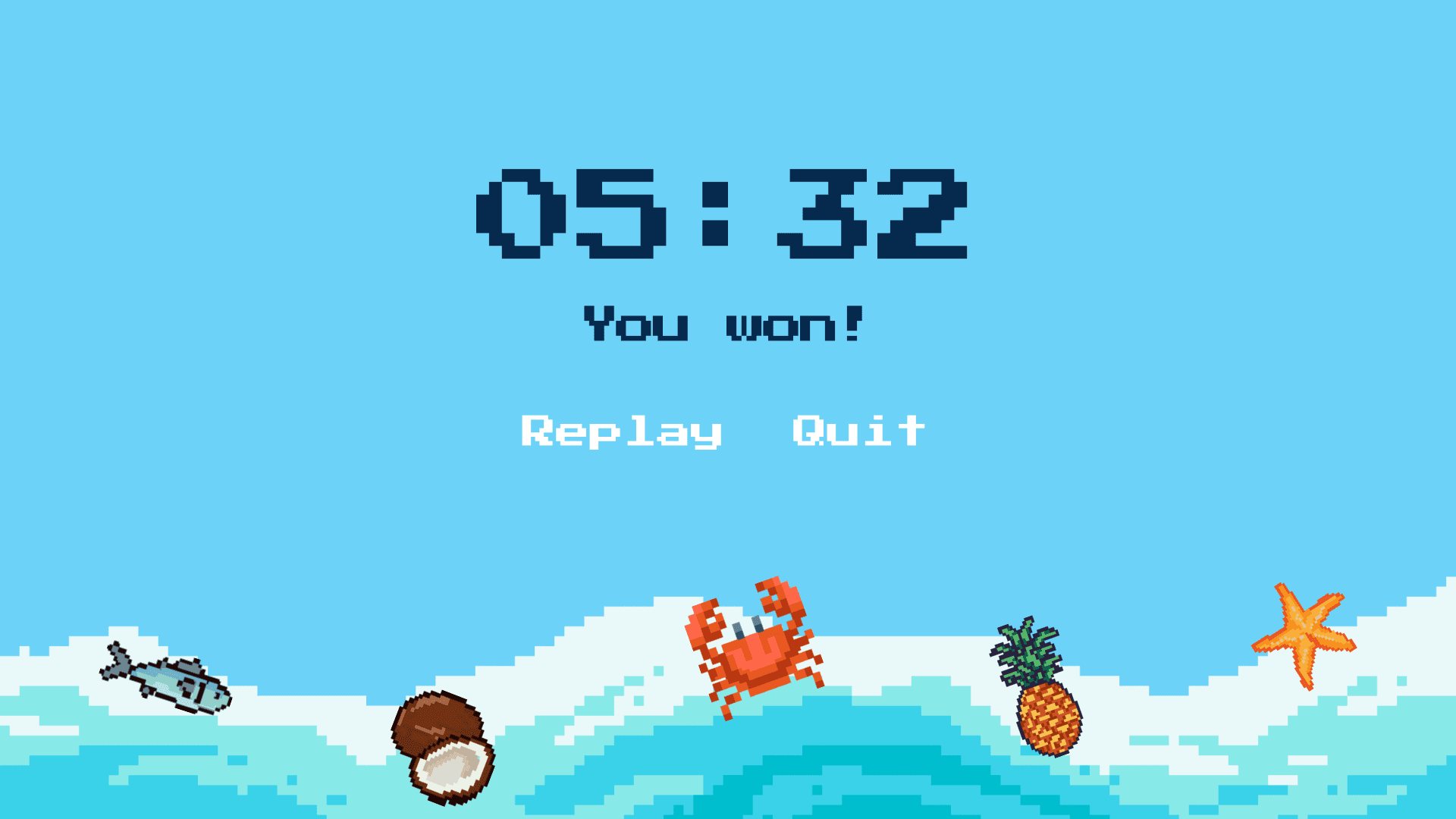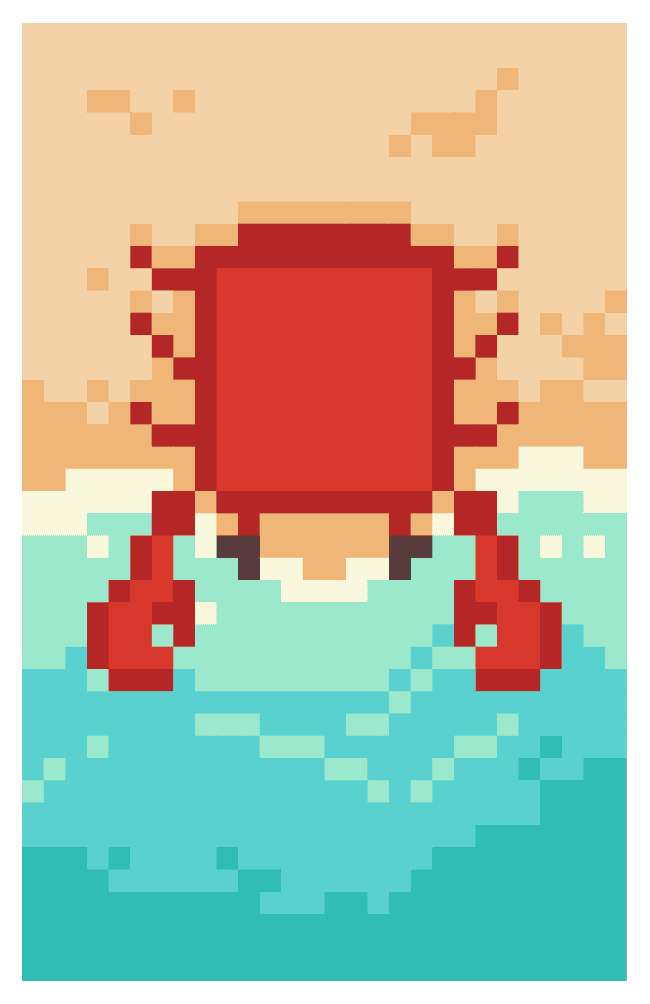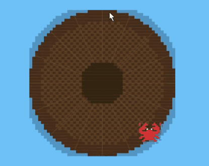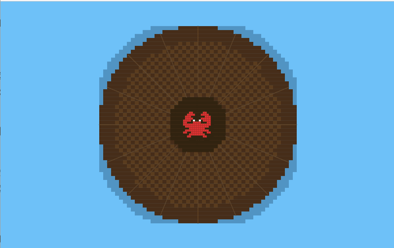 The game starts with the crab appearing at a random position on the raft.